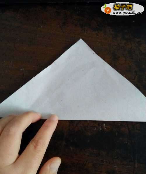 4我们以底边的中点为圆心,先把右侧的角向左折如下图所示。