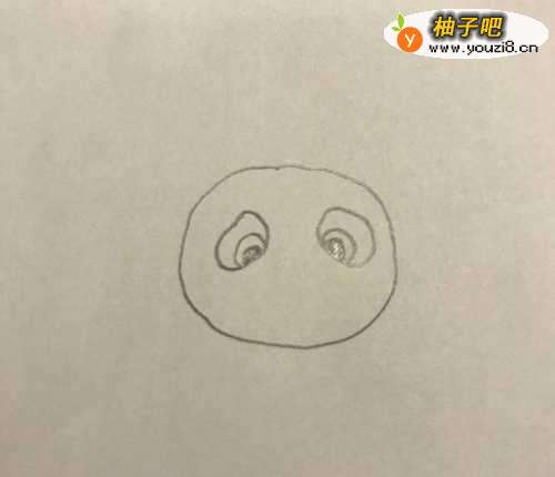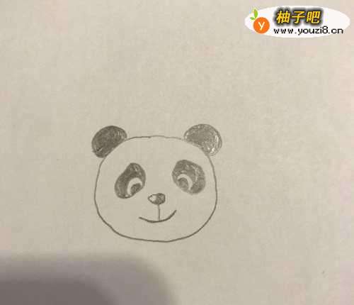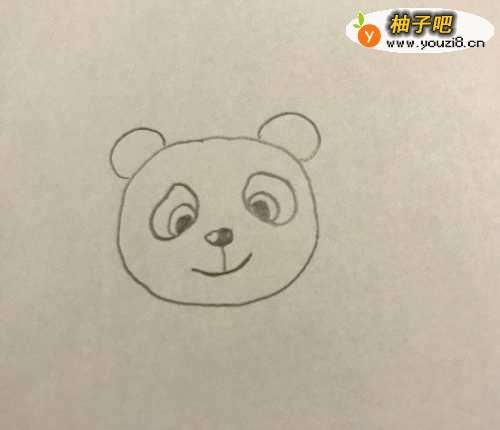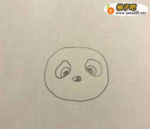 2在圆圆的脸上画上熊猫的大眼睛,见下图