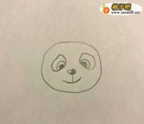 3在眼睛的下方画出熊猫的鼻子,见下图