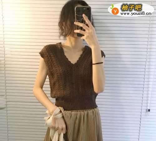 棕色针织马甲怎样搭配