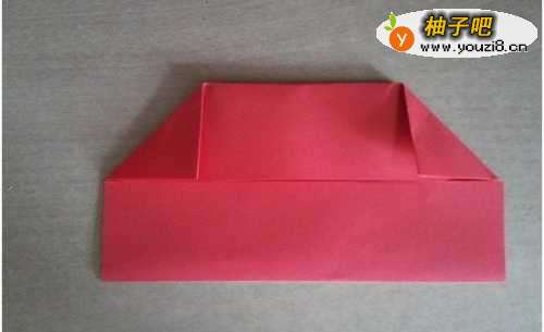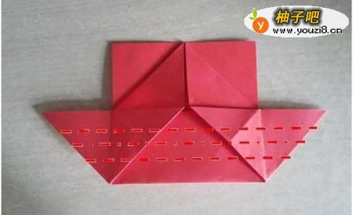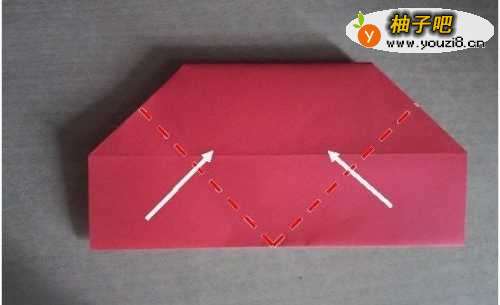 9沿着虚线把上面的梯形部分整个折下来并压平,具体效果见下一步。