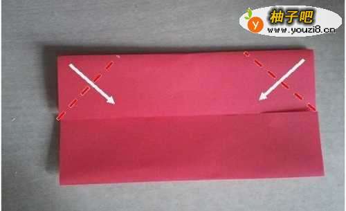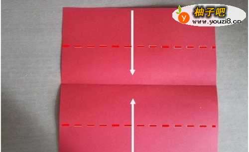 7沿着图中所示的虚线把下面的两个部分折到上面。