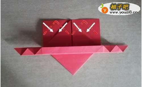 12把上面的两个教折回来一些,使整个心形变得更为圆润。