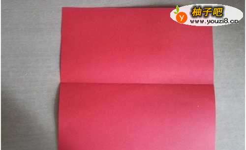 首先拿出一张正方形的纸,上下对折,折出一道折痕。