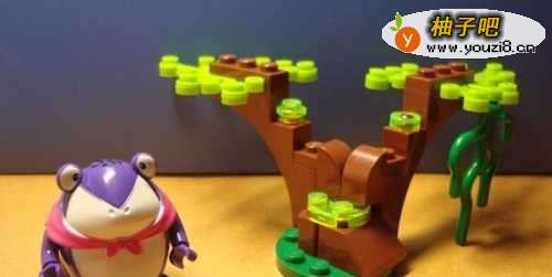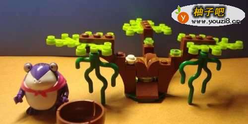 3接着,拼装出一个小青蛙积木,放在大树的边上,摆放的位置,如下图所示。