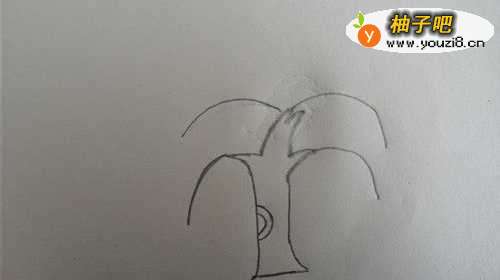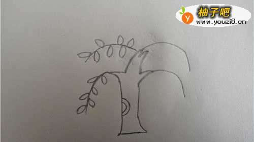 2然后,我们在纸上画上柳树的主干,接着画出树上的纹路。如下图所示
