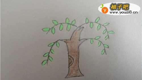 6最后,我们给柳树涂上颜色。如下图所示