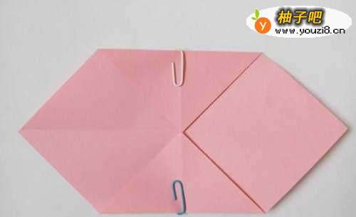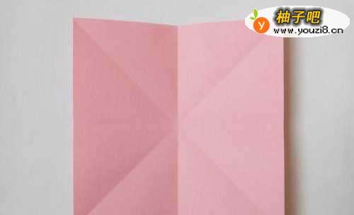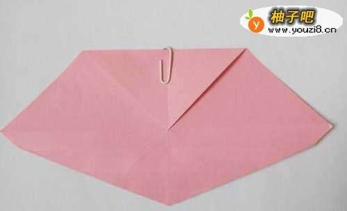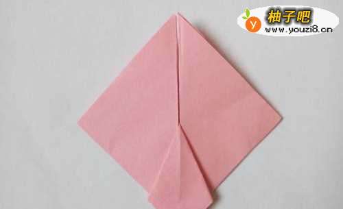 7翻面,将上面的角折叠过来,将下面的角向上折叠至边。