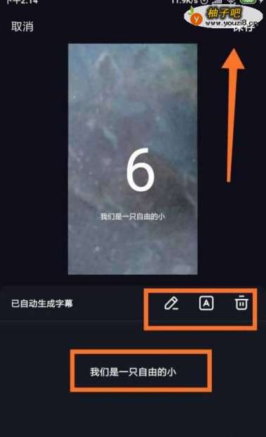 6这样,歌词就自动转换成字幕并出现在屏幕上了,还能利用工具对字幕上的文字进行调整,调整好之后,点击保存。
