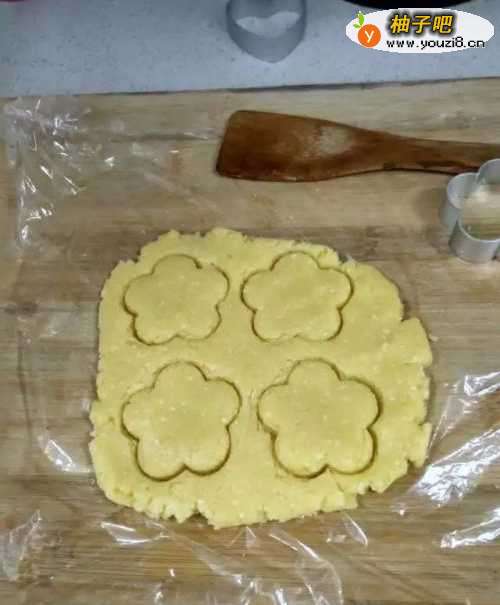 6用模具在上面压出好看的花朵形状。