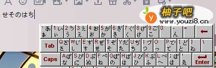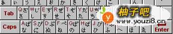 6之后就会弹出一个键盘的“软键盘”框。能看到“软键盘”的格式与我们的手打键盘格式是对应的,并且每个按键都有对应的日文音标