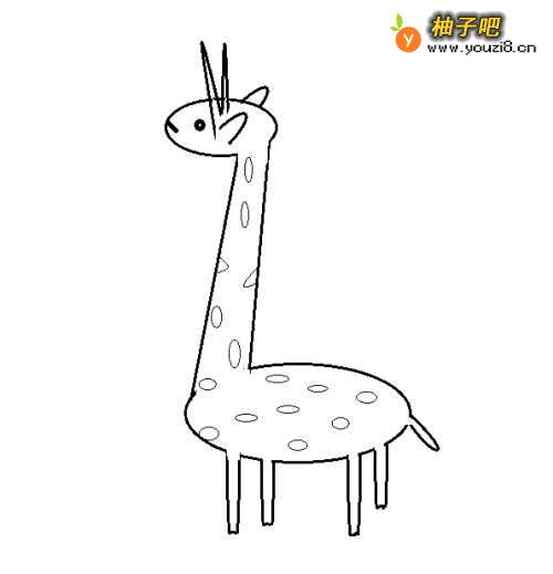 5画出长颈鹿的耳朵及两个角。