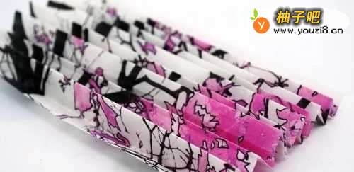 2把白纸像折扇子一样折起来,正面朝外。
