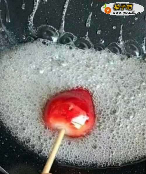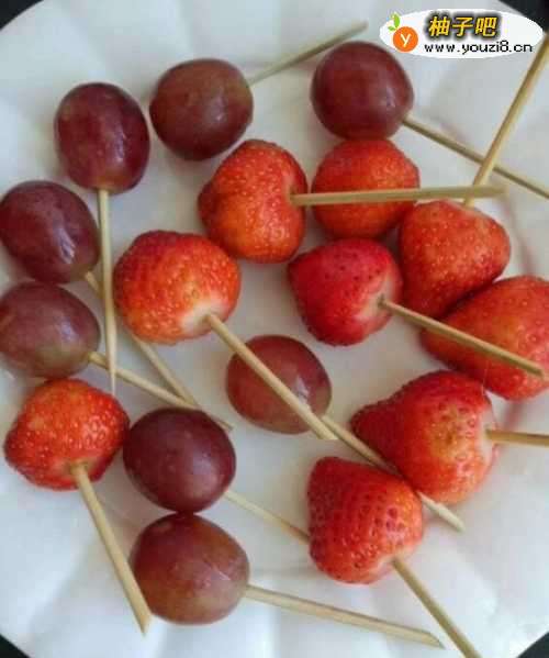 首先准备要冰糖的水果,清洗干净,用牙签穿一下。