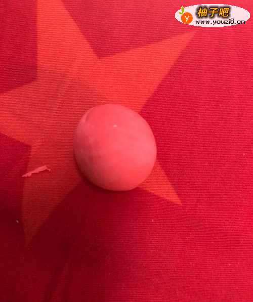 拿出红色的彩泥揉成圆形,在拿出绿色的彩泥成成圆形按扁。