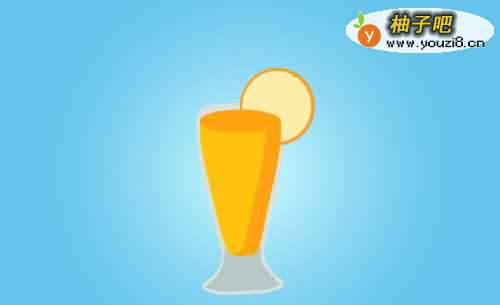 3配置深黄色和浅黄色绘制出橘子汁,绘制出层次感;