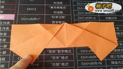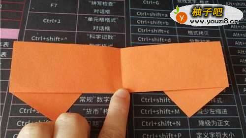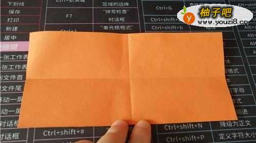 3然后,启用彩纸,如图。再把右侧的部分向中线对折,左侧的部分同样实施,如图所示。