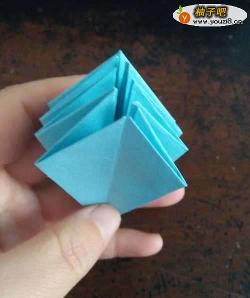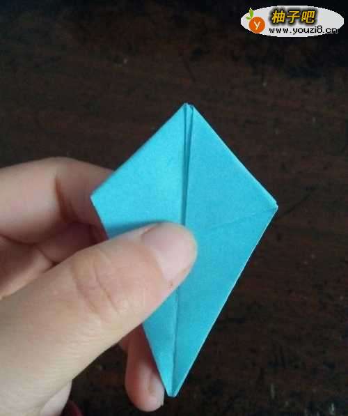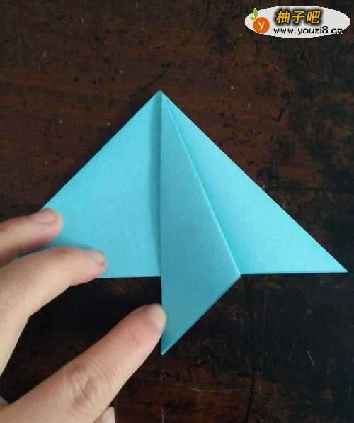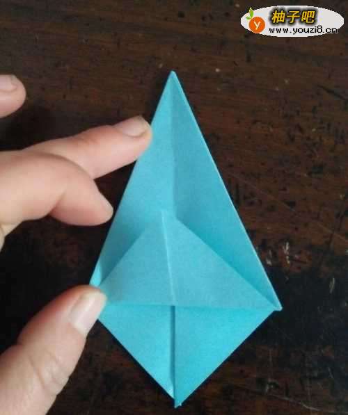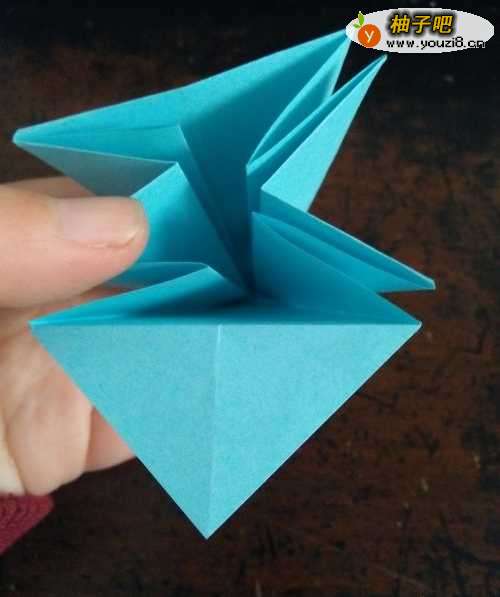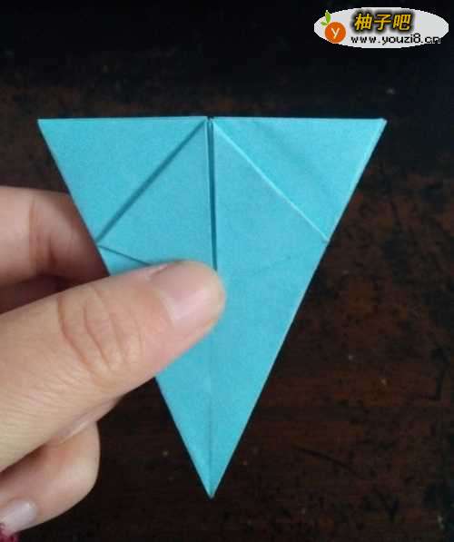 6全部折完后,我们把角拉开,把刚才的角按照折痕折向内部。