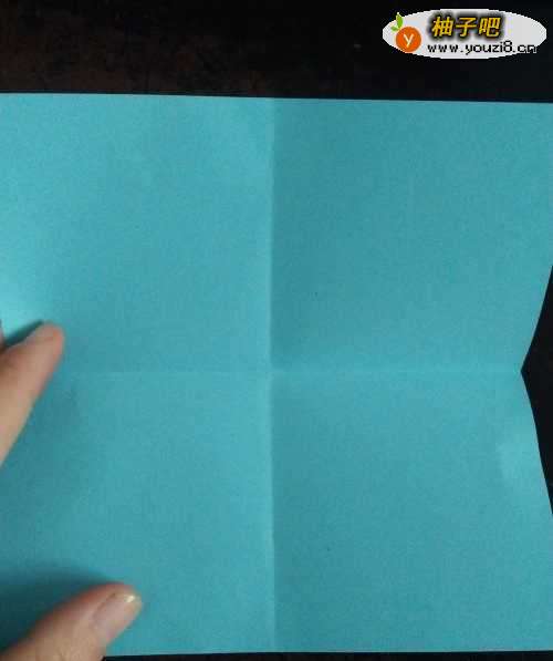 首先我们把彩纸的两条中线对折,翻过来再把两条对角线对折。然后按照折痕把边向内折如下图形成个三角形。