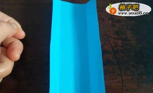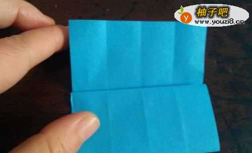 5然后把彩纸开启,我们把一头三等分对折。然后再把彩纸折回到步骤三。