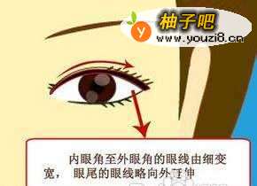 5眼线的运用技巧 内眼角至外眼角的眼线要由细变宽,眼尾的眼线略向外延伸。