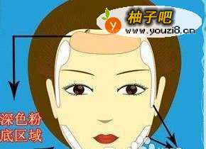 2使长脸变小的底妆运用技巧 不同颜色底妆的结合配置能有效塑造脸型。配置接近肤色的粉底后,在额头的上方和下颌处(下巴尖)涂深色粉底来收敛一下,这样能使脸显得短一点。然后在额头的两侧和下颌的两侧涂亮色粉底,从而使面部的两侧扩宽。如此以来,长长的脸就显得稍微圆一些了。在彩妆中,底妆向来是塑造脸型的利器,不同颜色底妆的巧妙运用能塑造出不同的脸型。