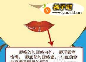 6唇妆 唇峰要向外勾画,嘴唇要看起来圆润饱满,嘴唇底部勾画地略微宽些。另外,口红要着重在嘴唇的两端涂抹。 现在照照镜子,是不是一个精致的小脸已经显现了?最后,我们要适当补一些腮红以收尾: