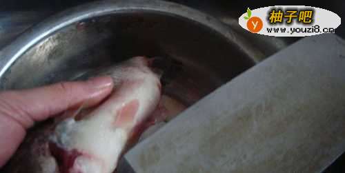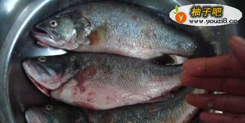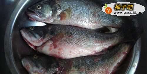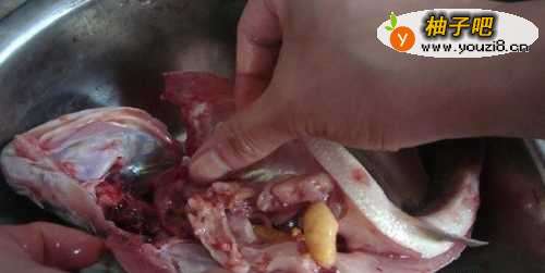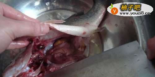 6接着,把鲈鱼内不吃的东西去除,如下图所示。