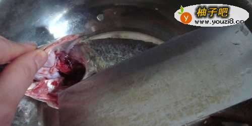 3然后,告诉孩子用刀去除鲈鱼的鱼鳃,如下图所示。