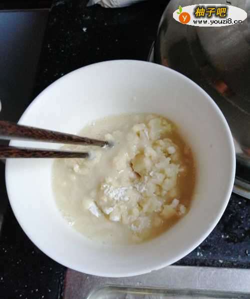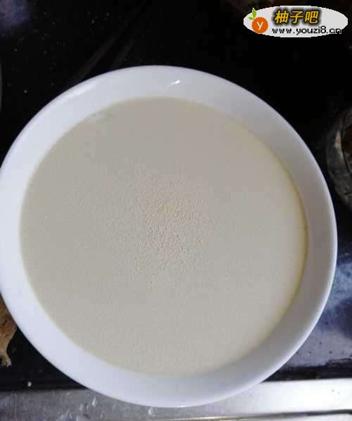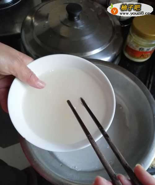 3第三步,接着把水和发酵粉搅拌均匀。