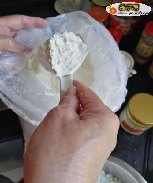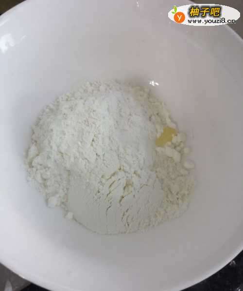 7第七步,准备100克面粉做油酥用。