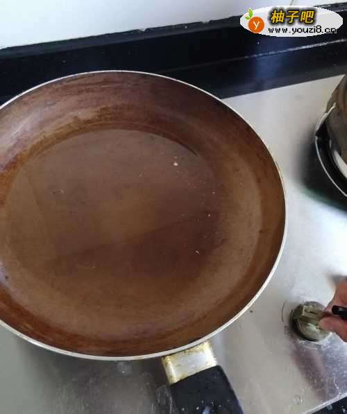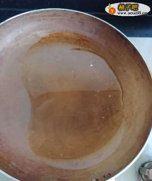 6第四步,在铁锅中倒入一大勺子花生油。