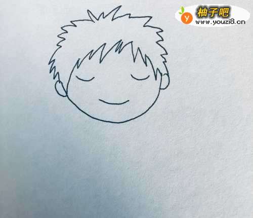 2再绘画出男生的帅气的发型,注意前面的头发哦