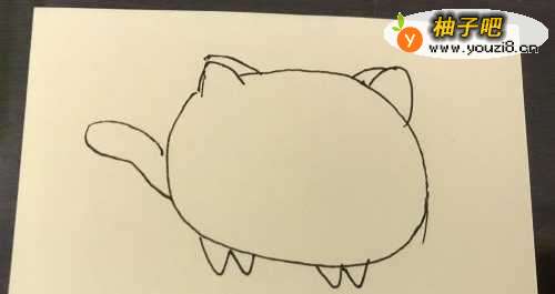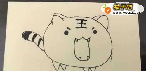 首先绘制出老虎的轮廓,然后画出老虎嘴巴、眼睛。
