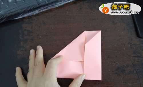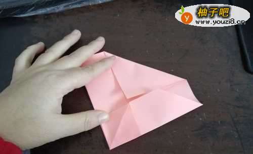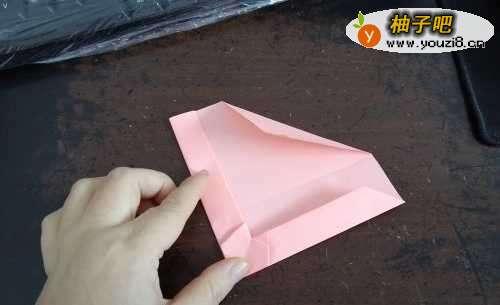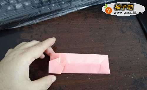 5把上侧的边向下折,并且折到里边去,继续向下折一次,如图所示。
