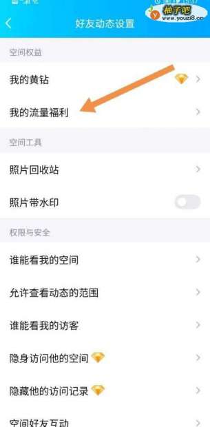 5点击开启好友动态权限使用,找到我的流量福利。