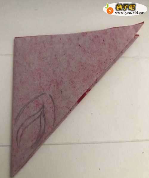 3第三步 两角对折好之后 再把它调整在合适的位置 然后拿起绘图铅笔先画上一个花瓣的外线草图轮廓