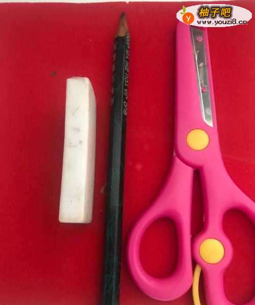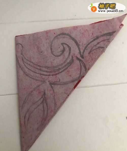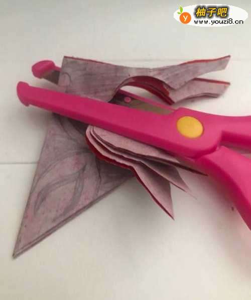 5第五步 都花纹之后 再用绘图铅笔涂实一遍每一处需要剪去的部位 然后拿起手工剪刀剪去外面和周围多出来的一部分彩纸