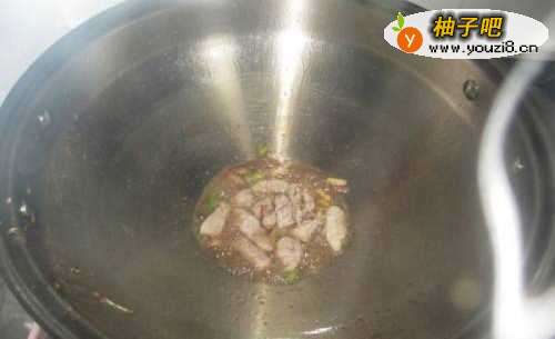 6将肉倒入锅肉炒熟