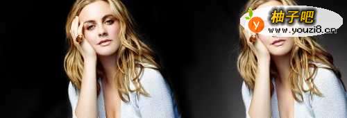 第一步:PS加深工具制作纯黑背景,也能加眼影和乳沟,我们用的素材是一位国外的美女模特,气质不错吧!大家看看这图片的人物四周是有黑到灰白的渐变过渡,这里我们想把背景做的整体是纯黑色的。这个是首要目标。下面看步骤:我们把美女的图片用PS开启,然后把图片所在的图层给复制一份,首要是为了做对比使用,能看看前后图片的变化情况。