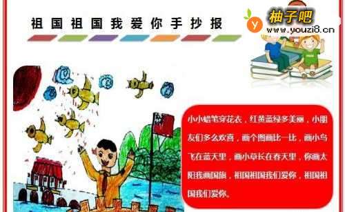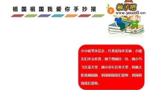 2在【祖国祖国我爱你手抄报】标瞧陕板题的右侧处,画出画面丰富内容,如下图所示。