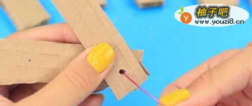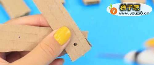 4将纸板重叠,并用锥子戳一个洞