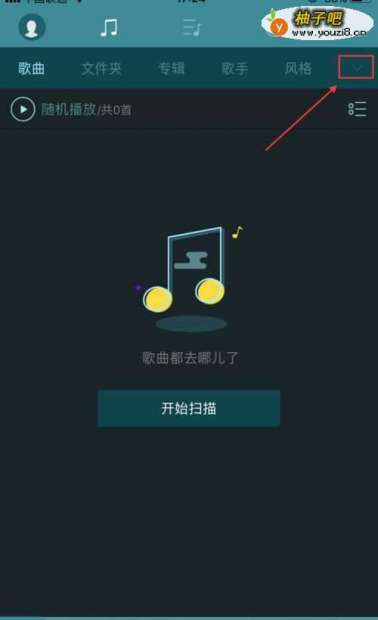 2下载完成后,开启海贝音乐,并点击右上角箭头指向的图标。