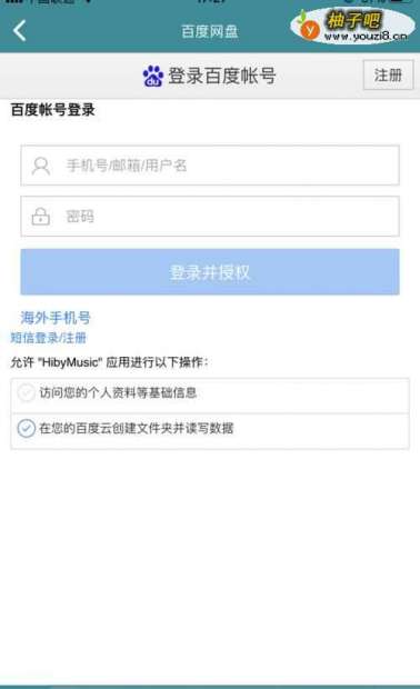 5在登录框中输入百度网盘账号密码登录百度网盘,登录成功后他会在你的网盘下生成一个新的目录(我的应用数据->HibyMusic)。