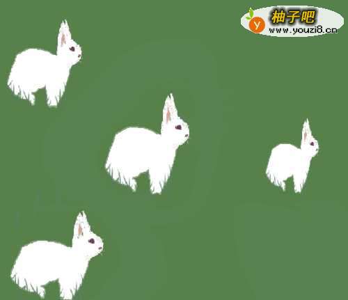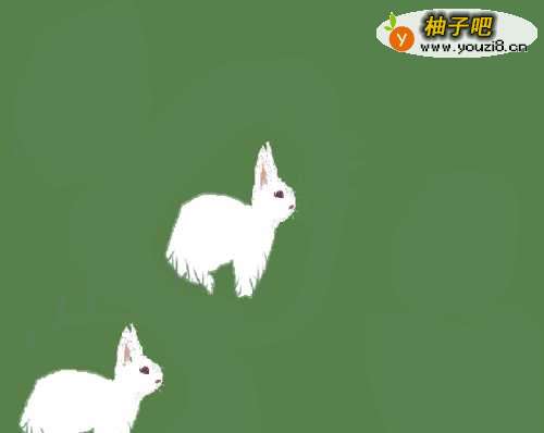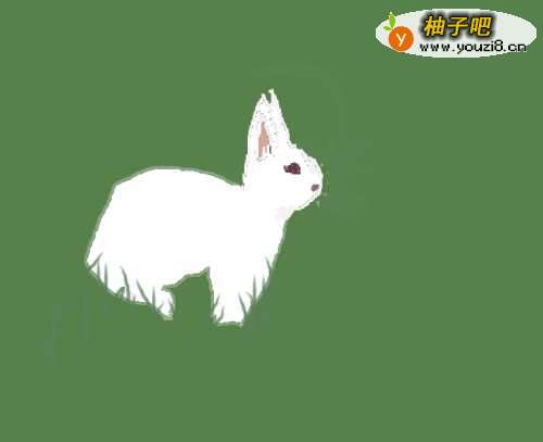 4给小兔子图成白色。同时画出小兔子身旁的青草。