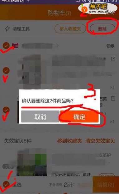 8此时,页面中会弹出“确定要删除这2件商品吗?”的提醒字样,我们点击“确定”就好;