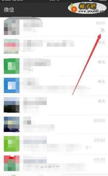 5开启开关后,返回到首页或者群聊中可阅读开启消息免打扰的开启提示,当显示此图标样式即为开启消息免打扰状态。