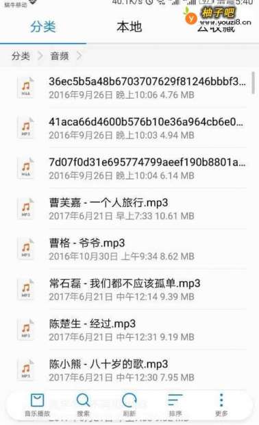 要想给好友分享音乐,首先你要先找到一首本地音乐,启用手机内部存储,点击音频找到一首你要分享的歌曲