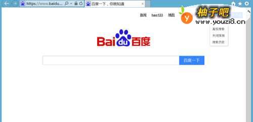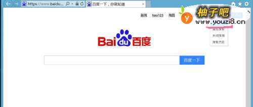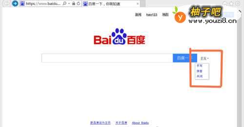 7第七步:启用百度首页,在百度搜索栏后面,会一个选项框,点小三角下拉菜单,选择手写。