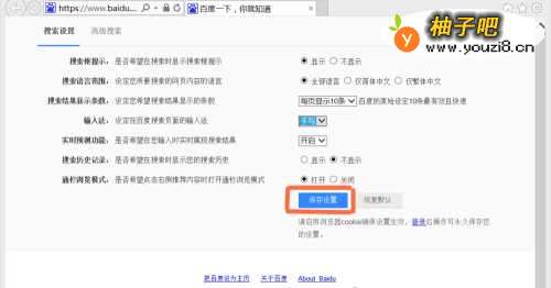 6第六步:鼠标左键“保存配置”,会弹出一个窗口显示“已记录您的偏好”应该点击确认。页面自动返回到百度搜索首页。